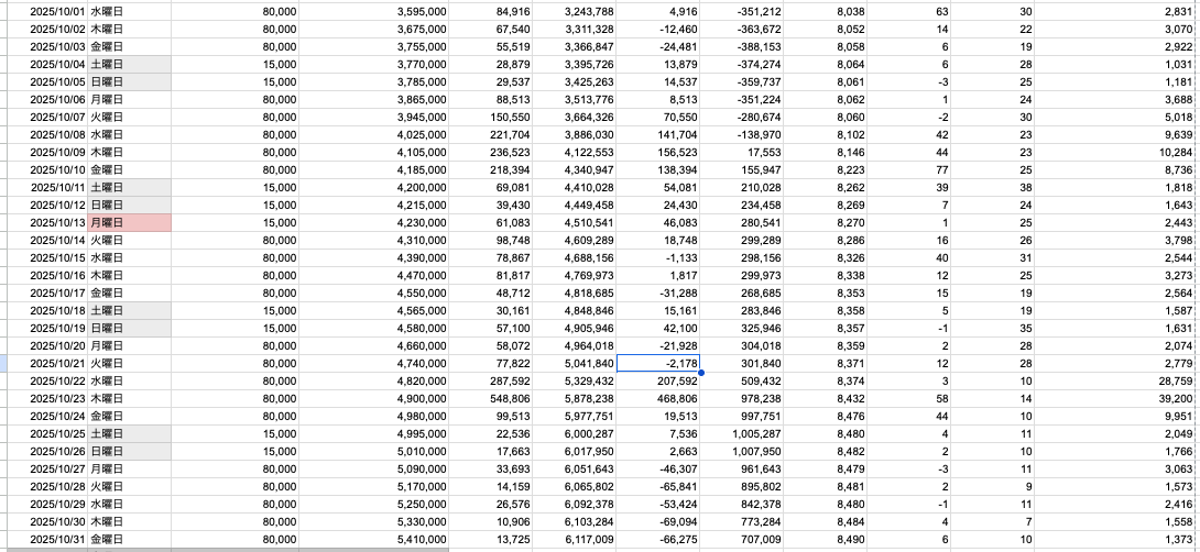 チャレンジは、2025年8月から10月までだったので、まずは2025年2月から7月までの状況をお伝えします。(1年以上前のデータが引っ張れないので、1月1日の情報が欠落しているため)